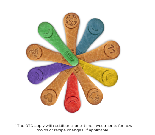 Personalizeaza produsul tau EATlery®* dupa ideile si preferintele tale si cucereste inimile clientilor tai tinta. Cu un termen de productie de 6 luni, putem adapta complet culorile si aromele in functie de dorintele tale si iti oferim numeroase optiuni de design individual si sustenabil:
