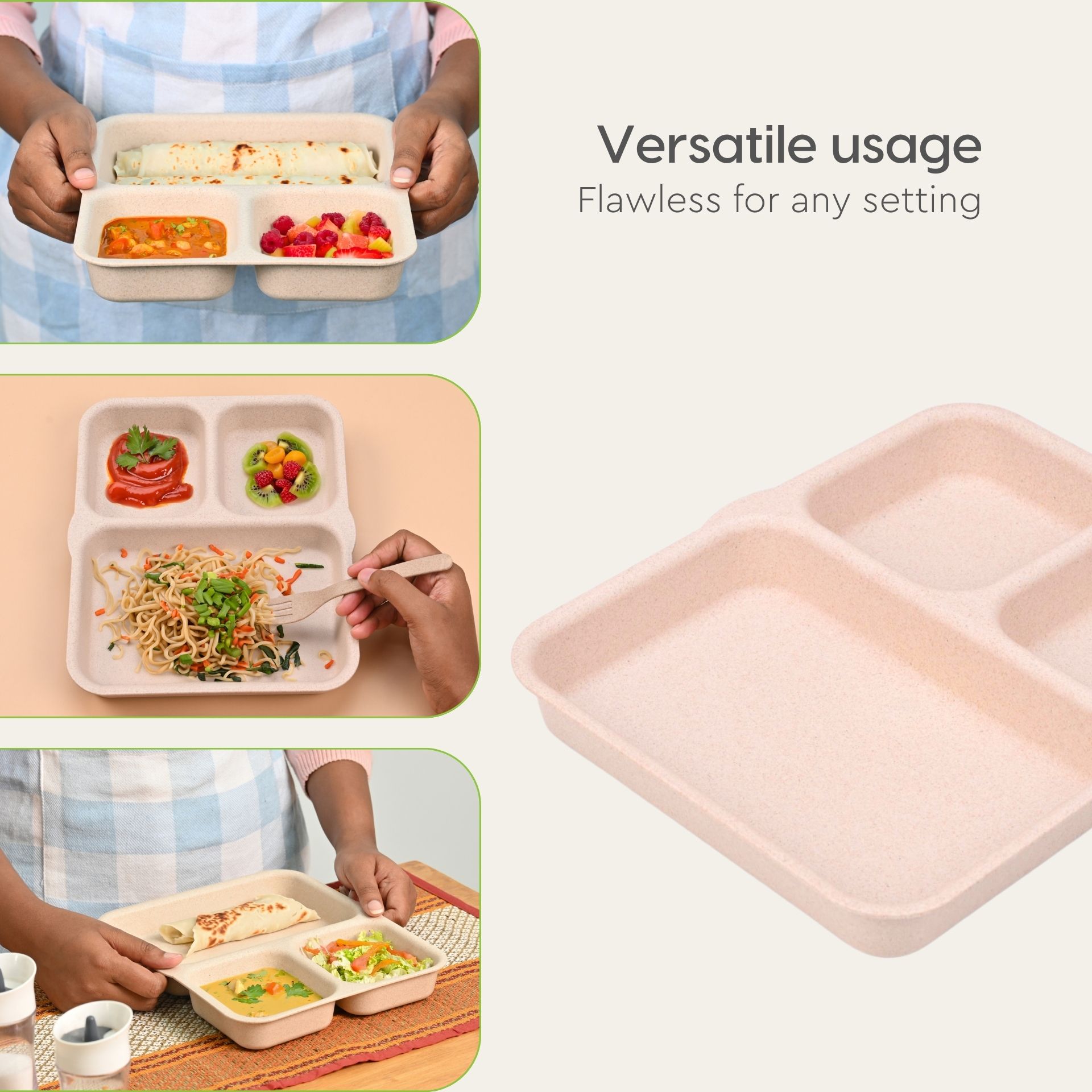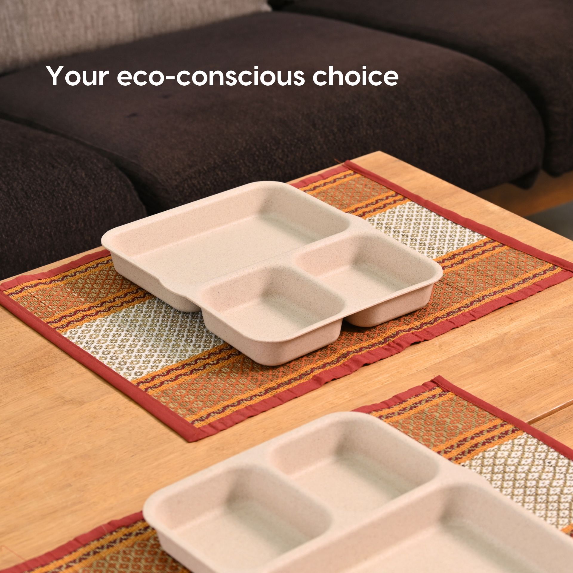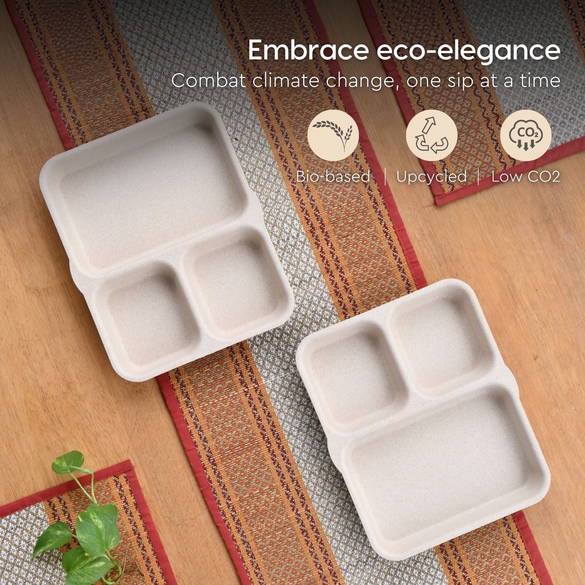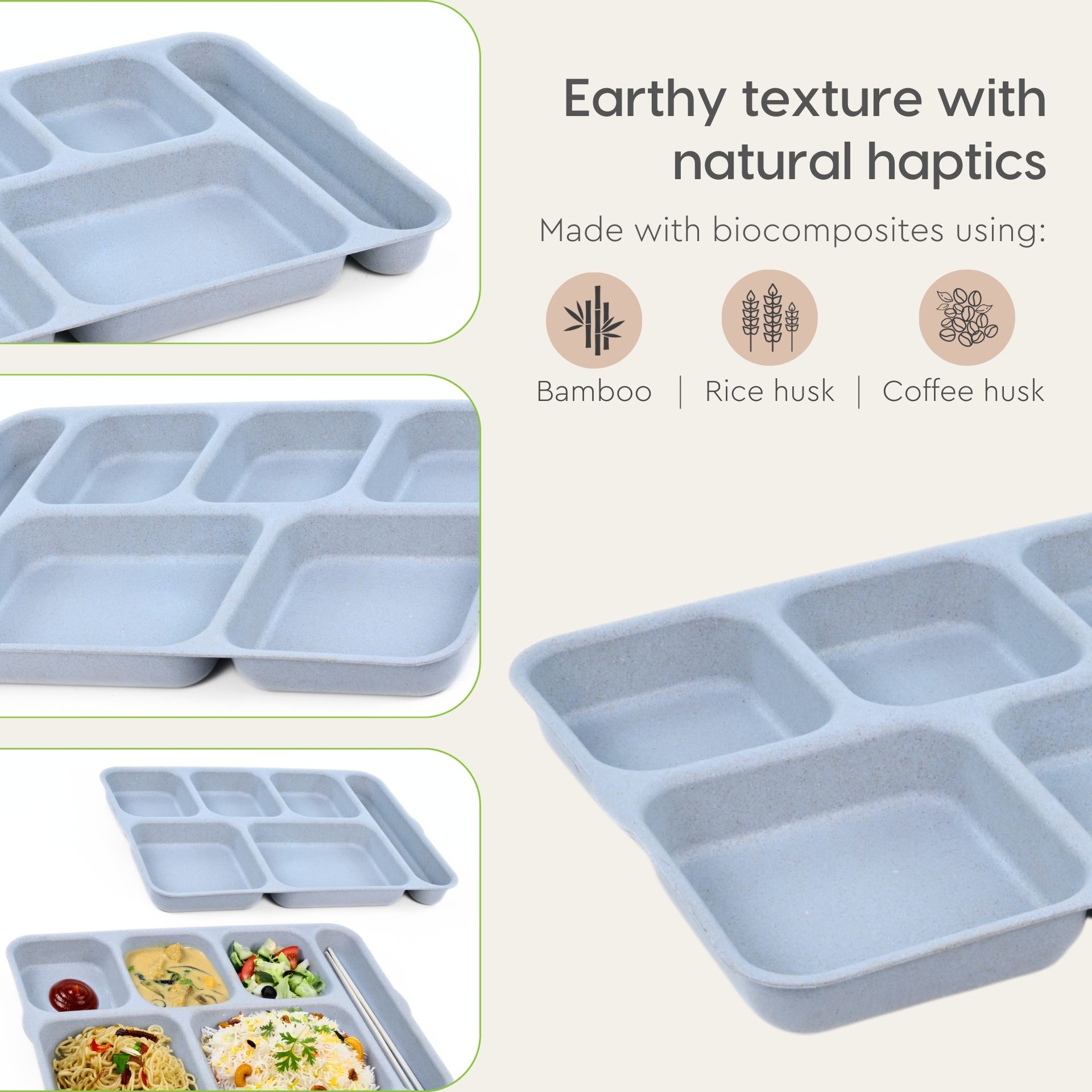 O alternativa sustenabila la farfuriile traditionale din plastic sau melamina, aceste farfurii compartimentate eco-friendly sunt realizate din materiale bio-compozite, non-toxice.