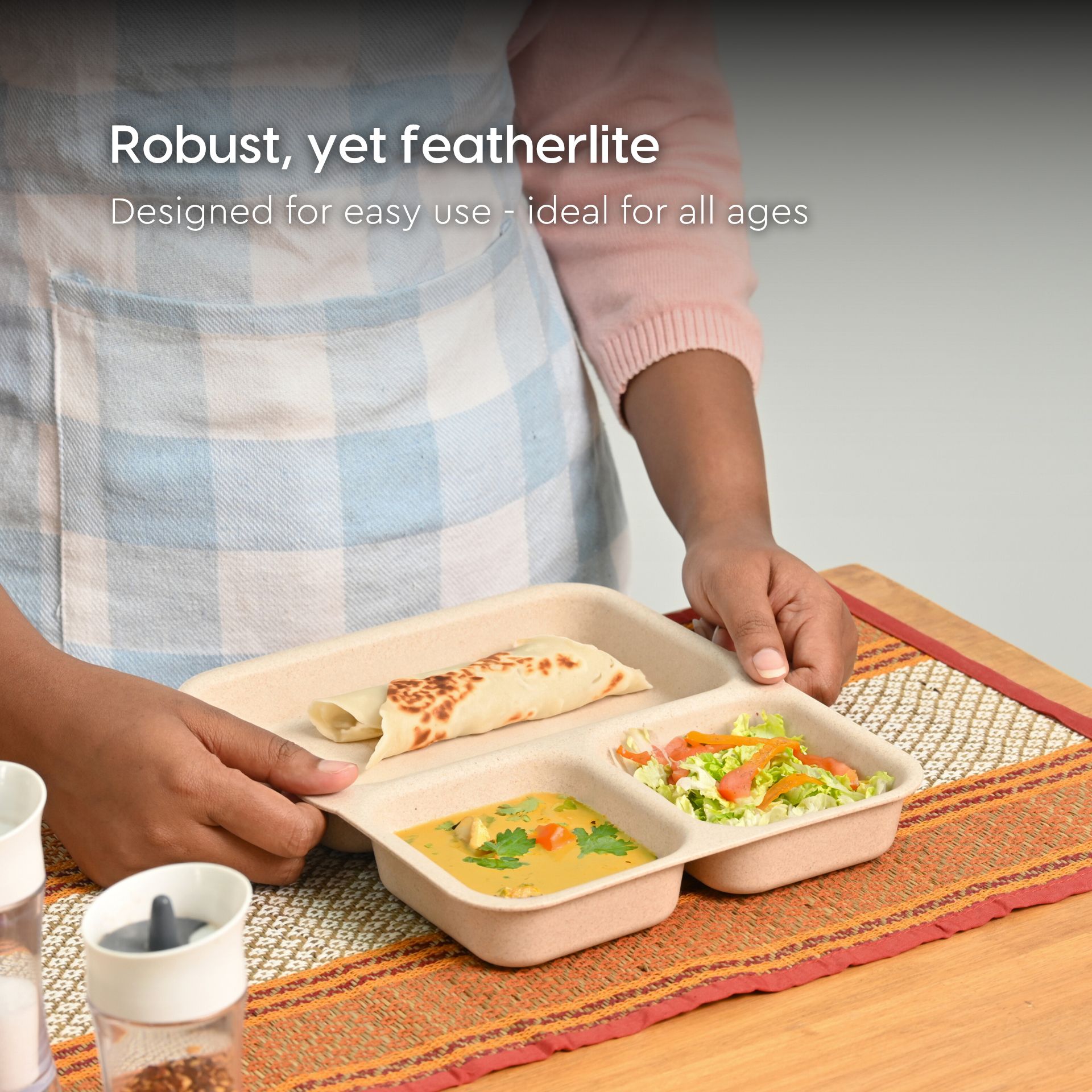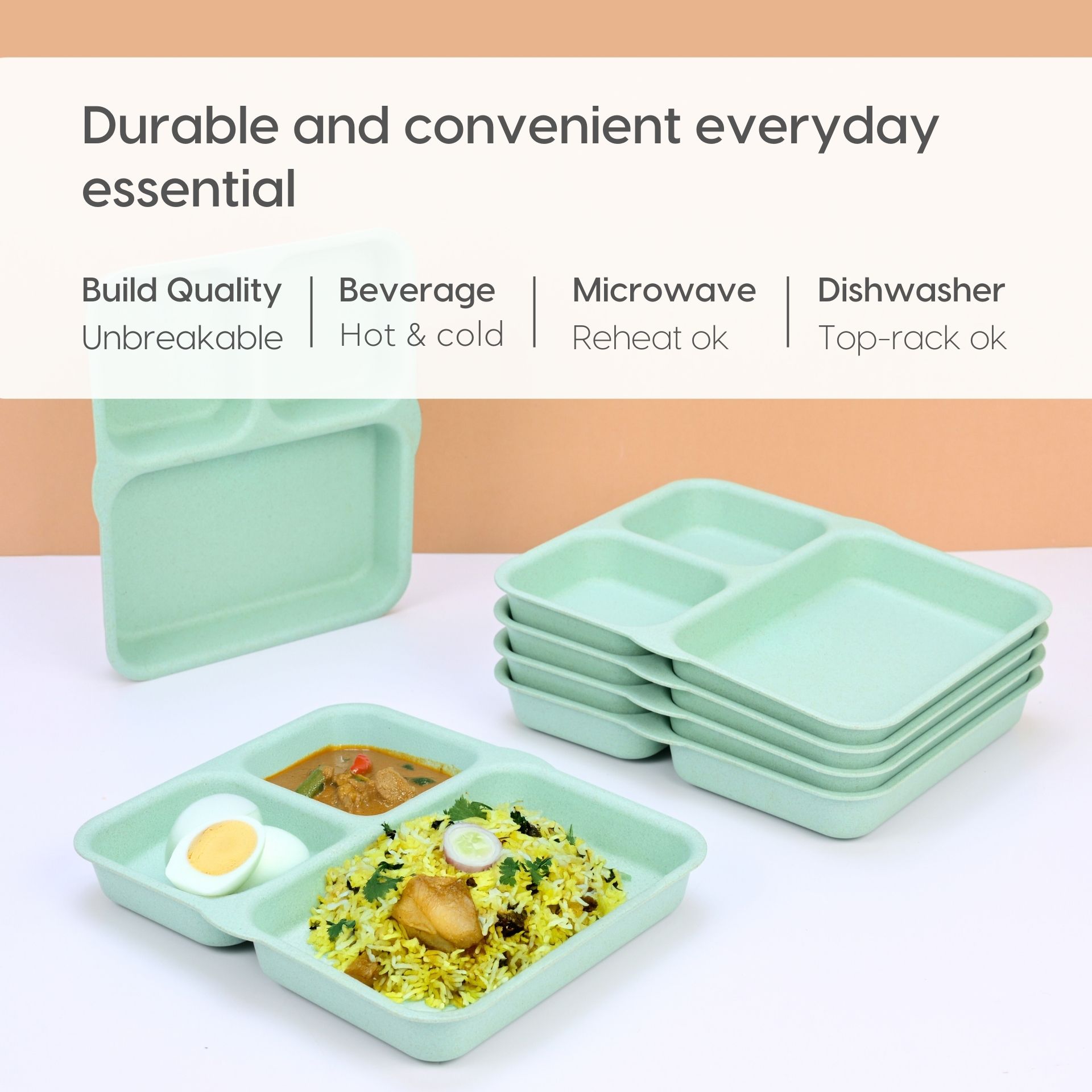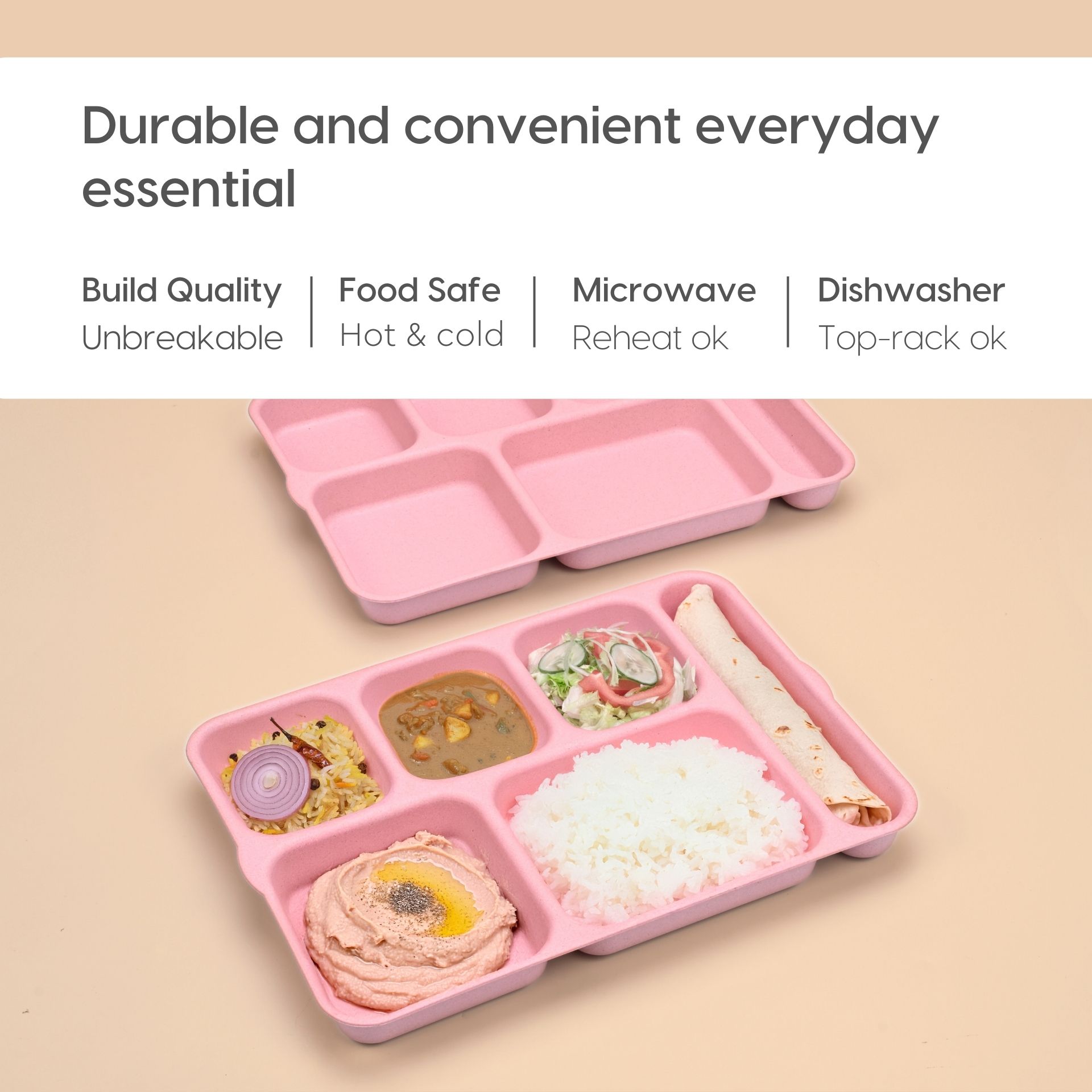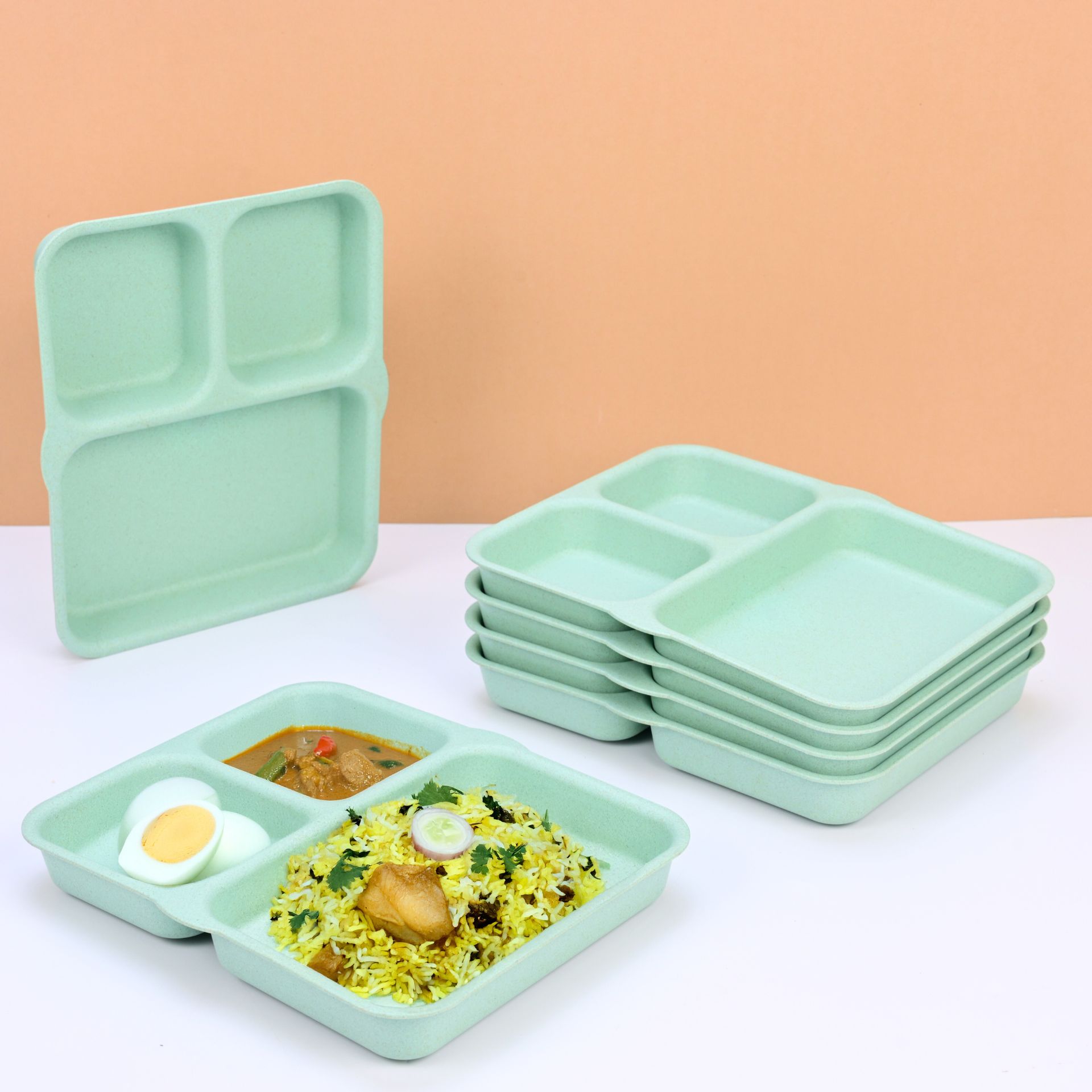 O alternativa sustenabila la farfuriile traditionale din plastic sau melamina, aceste farfurii compartimentate eco-friendly sunt realizate din materiale bio-compozite, non-toxice.