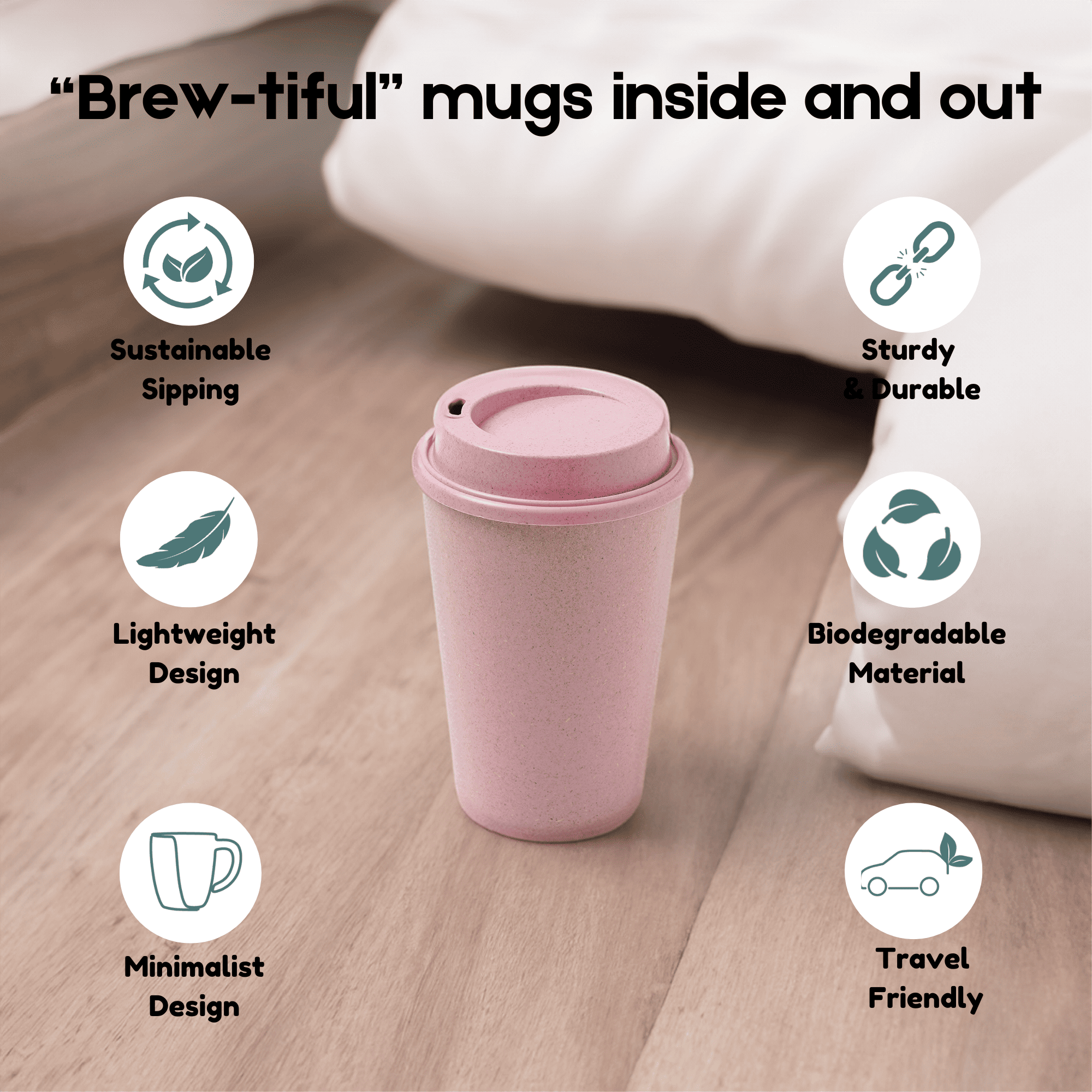 Aceste pahare au un design simplu si o utilizare practica. Realizate din reziduuri agricole si disponibile in nuante pastelate, ele sunt un element esential pentru masa ta. Bucura-te de bauturile preferate acasa, la birou sau in deplasare, reducand impactul asupra mediului.